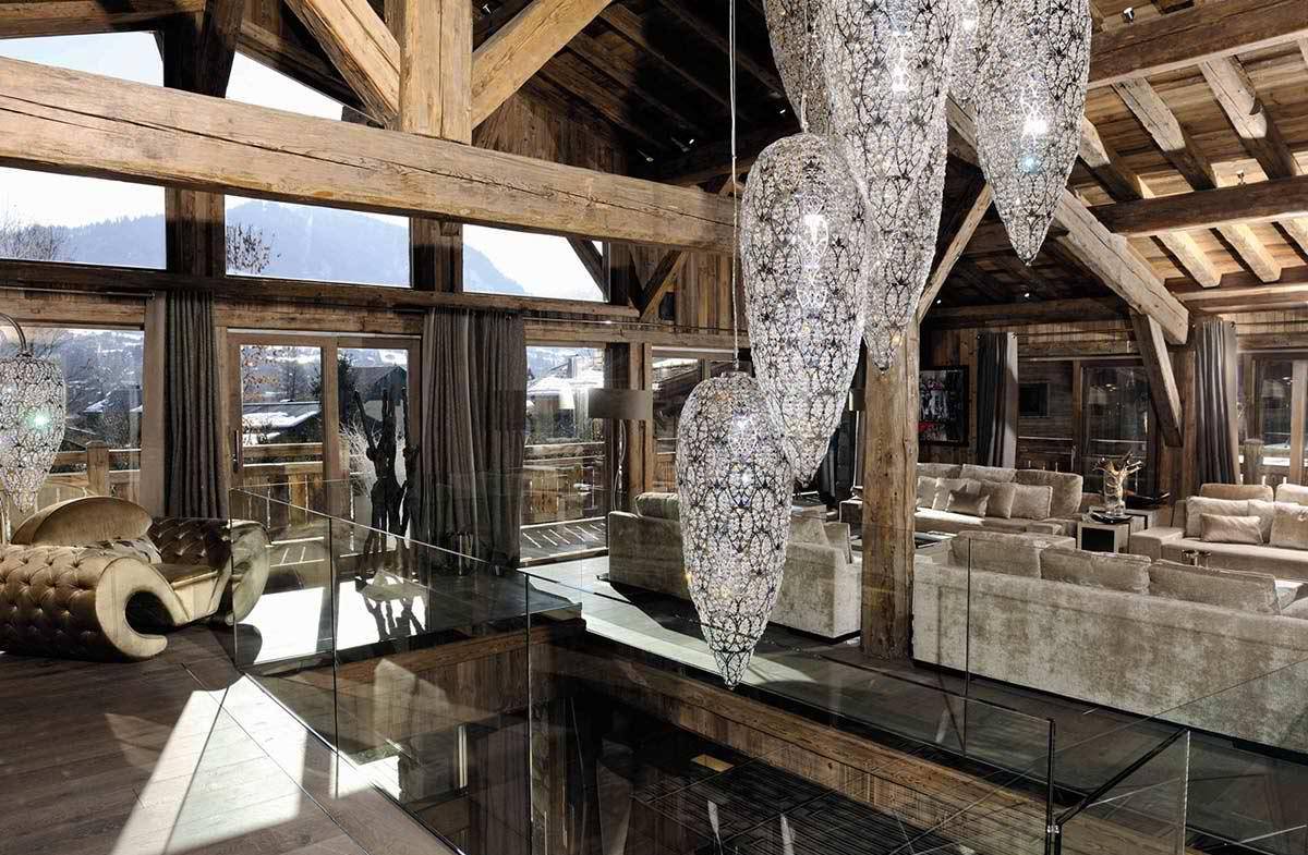 Гостиная в стиле шале должна быть просторной и не препятствовать воплощению самых смелых дизайнерских задумок.