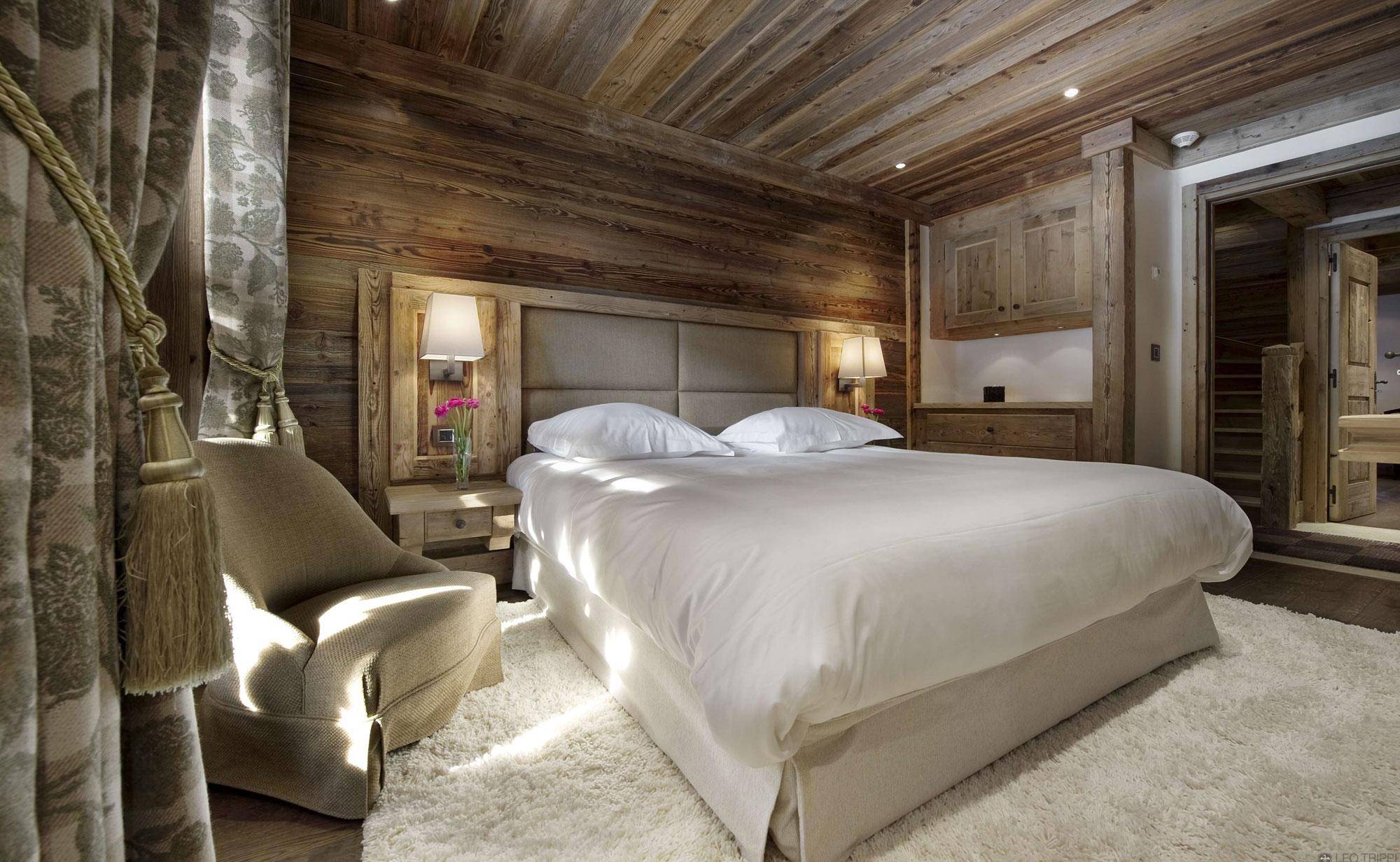 Для применения традиционного оформления потолка в стиле шале — деревянных балок — требуются высокие потолки. Если потолки низкие, то от балочного дизайна придётся отказаться.
