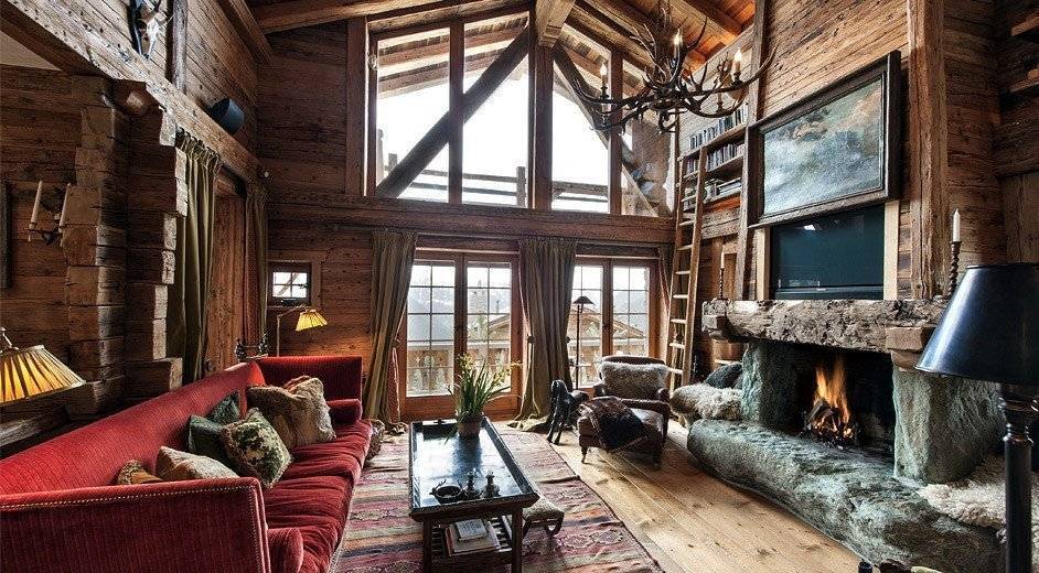 Гостиная в стиле шале должна быть просторной и не препятствовать воплощению самых смелых дизайнерских задумок.