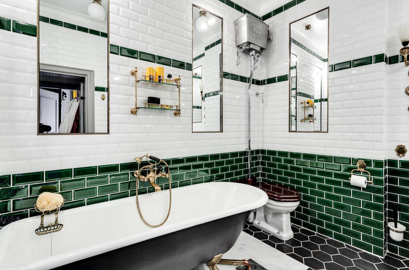 Ар-деко не предполагает привязанности к определённым материалам, формам и цветам. Он допускает простор для фантазии. Это же можно сказать и о другом, не менее замечательном стиле, ар-нуво, отражающем более поздний период в истории искусства. Представьте, как должны выглядеть ванные комнаты кокетливой Коломбины, легкомысленных танцовщиц из Мулен Руж, запечатлённых на картинах Дега, изящной Клариссы Дэллоуэй из романа Вирджинии Вульф или, даже, любознательной Алисы из сказки Кэрролла «Алиса в Стране Чудес», и воплотите одну из них в своей квартире. В качестве декоративных элементов используйте мотивы и манеру живописи художников, соответствующих выбранному стилевому решению. Ар-деко и ар-нуво позволяют создать интерьер ванной комнаты, совмещенной с туалетом (фотографии это наглядно демонстрируют), способный воспринять любые доступные материалы.