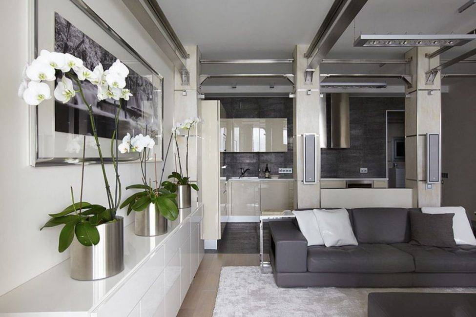 При оформлении квартиры или дома очень важно отталкиваться от стиля помещений. К примеру, если гостиная или любая другая комната выполнена в роскошном барокко, ампир или рококо, то наиболее подходящим вариантом будут высокие цветы