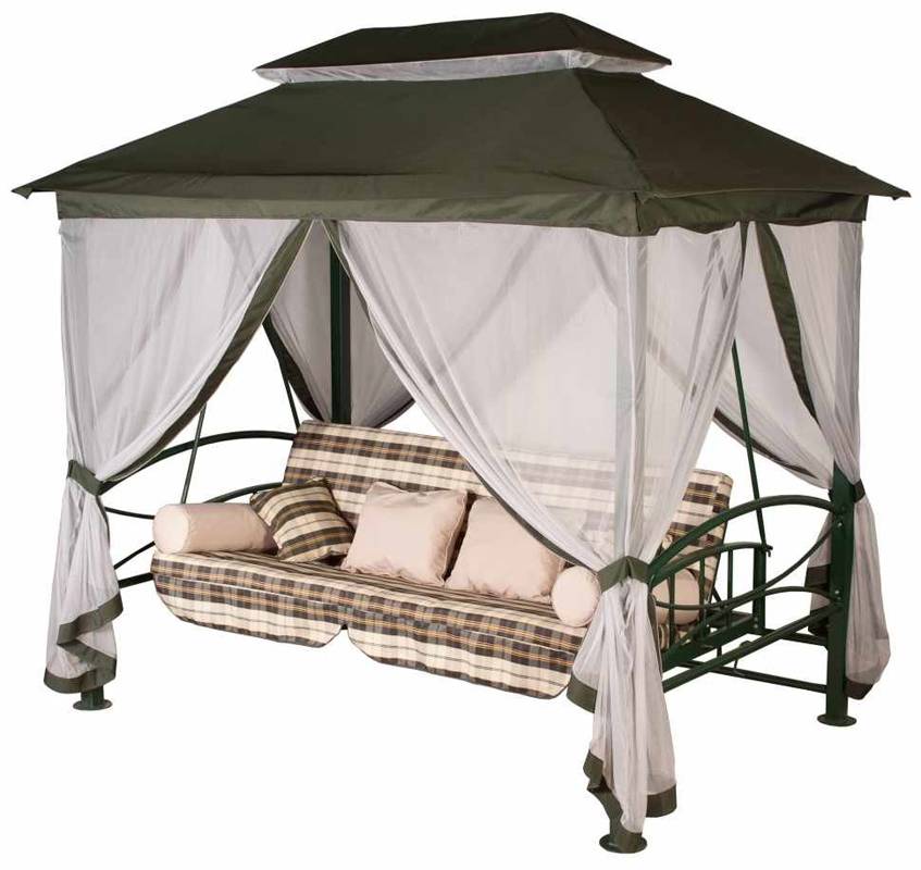 При всём многообразии садовых качелей, только стальная конструкция обеспечивают высокую надёжность, безопасность и долговечность. Каркас изготавливается при помощи сварки либо собирается из нескольких элементов. Первый вариант более надёжный, а во втором случае нужно периодически проверять крепежи и, при необходимости, их подтягивать.