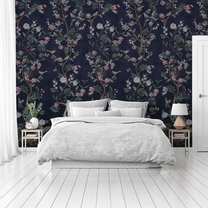 обратите внимание, что на размеры спальни повлияет и характер рисунка. Обои с большими изображениями лучше использовать для оформления более просторных комнат. Мелкие принты, наоборот, увеличивают пространство, поэтому подойдут и для небольшой уютной спальни;