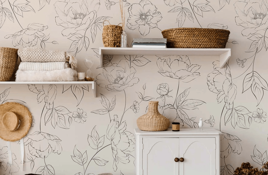 Ар-деко, модерн. Для элегантного дизайна нужны обои с растительными и абстрактными орнаментами в соответствующей стилистике. Цвета более насыщенные, но чистые, без сложных примесей: черный, беж, белый, синий.