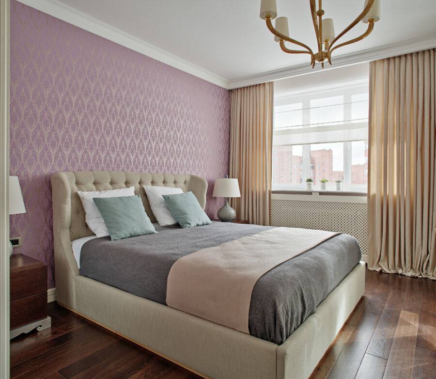 Для небольших спален рекомендуются светлые оттенки; они не только визуально расширяют пространство, но и настраивать на расслабление и полноценный отдых. На выбор влияет материал шпалер, а также особенности расположения паттерна. В отделке допускается комбинирование двух-трех материалов, если они подходят друг другу по стилю, текстуре или цвету.