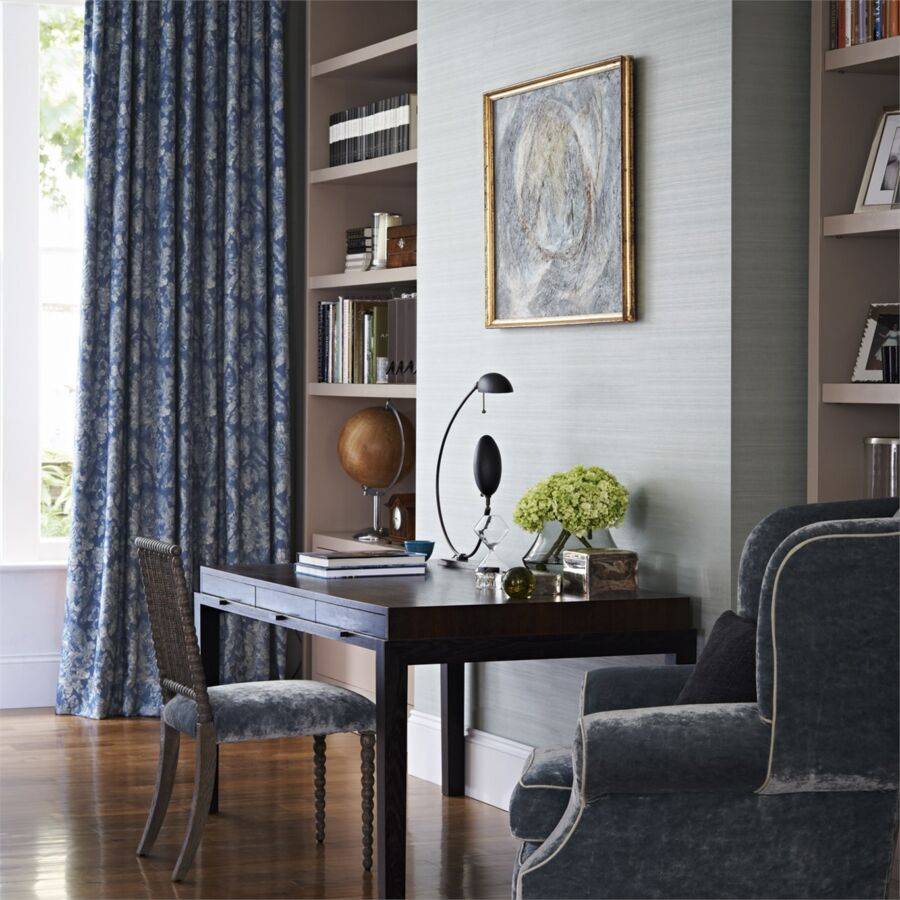 Наиболее распространенными в таком дизайне считаются обои коричневого, синего, бордового, черного цвета.