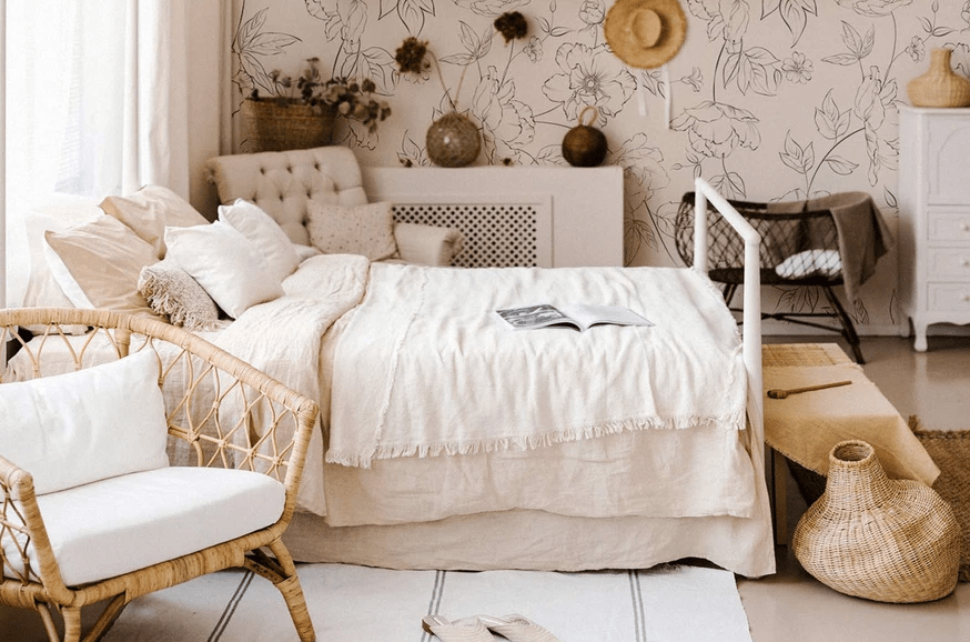 Точно так же светлые обои в спальне создают атмосферу уюта и тепла, увеличивая её размеры. Поэтому для небольших помещений лучше использовать обои со светлым фоном. Однако вам следует избегать использования обоев ярко-белого цвета, поскольку они создают чувство стерильной атмосферы.