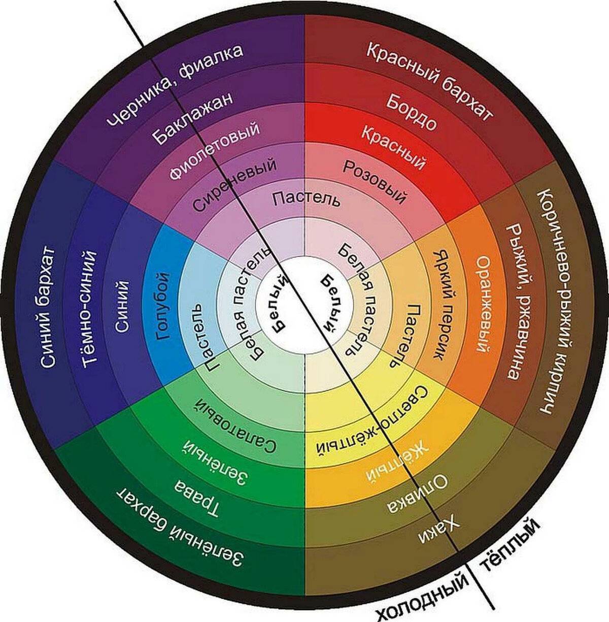 Палитру теплых и холодных цветов можно увидеть на диаграмме.