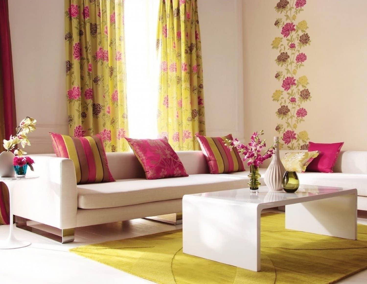 Отдельные элементы интерьера: небольшие столики, стулья, вазы, торшеры, диванные подушки – помогают правильно расставить цветовые акценты и зрительно увеличить пространство. Они могут быть такого цвета, как шторы или отличаться на 1-2 оттенка.