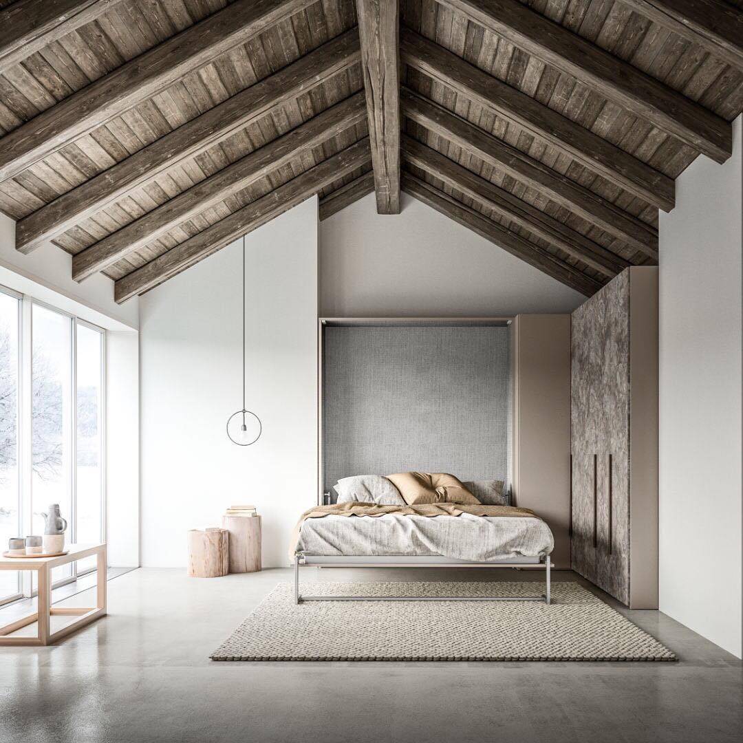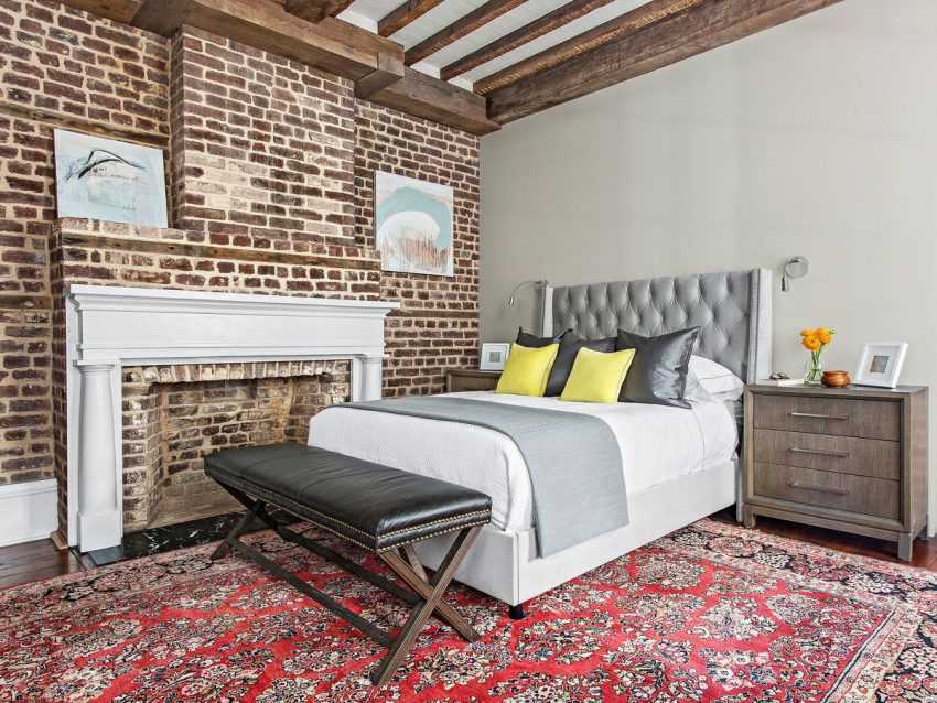 - Спальный гарнитур нельзя размещать под тем местом, где проходит потолочная балка, тем более, когда на ней имеются острые углы. Постоянно видя ее перед сном, человек начинает испытывать чувство беспокойства и дискомфорта, что приводит к нарушению сна и возникновению бессонницы. Когда переместить кровать не представляется возможным, можно произвести небольшой ремонт, в ходе которого необходимо придать краям балки плавные очертания или разместить над местом отдыха балдахин.