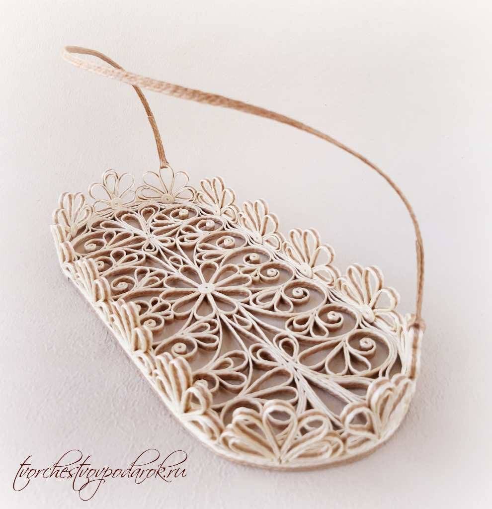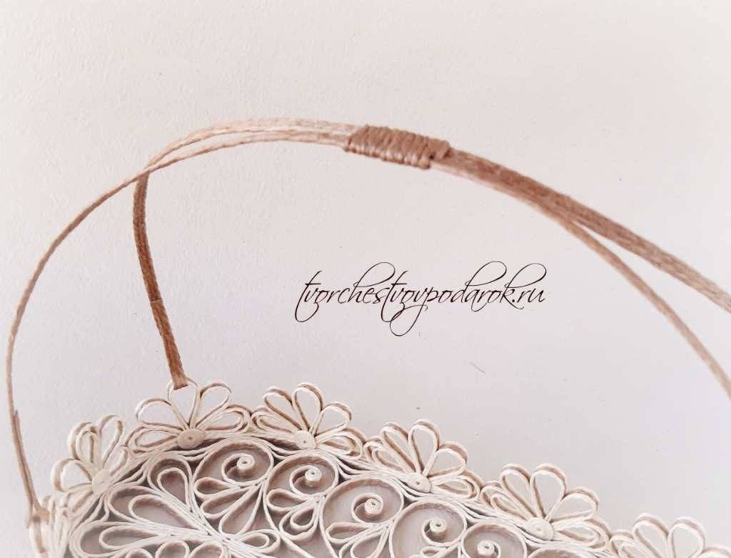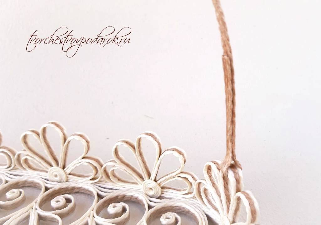Из одной полоски приклейте ручку и украсьте корзиночку по вкусу.