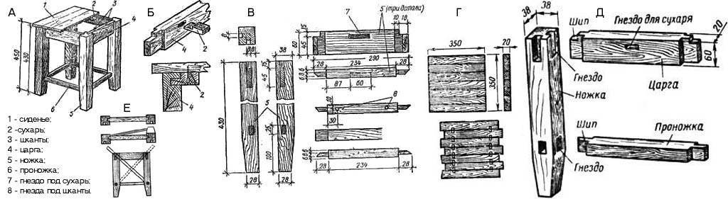 Домашним мастерам подобные названия вряд ли о чем-то говорят. Поэтому рассмотрим их детально. Все они отвечают за соединение табурета и придание ему максимальной прочности.