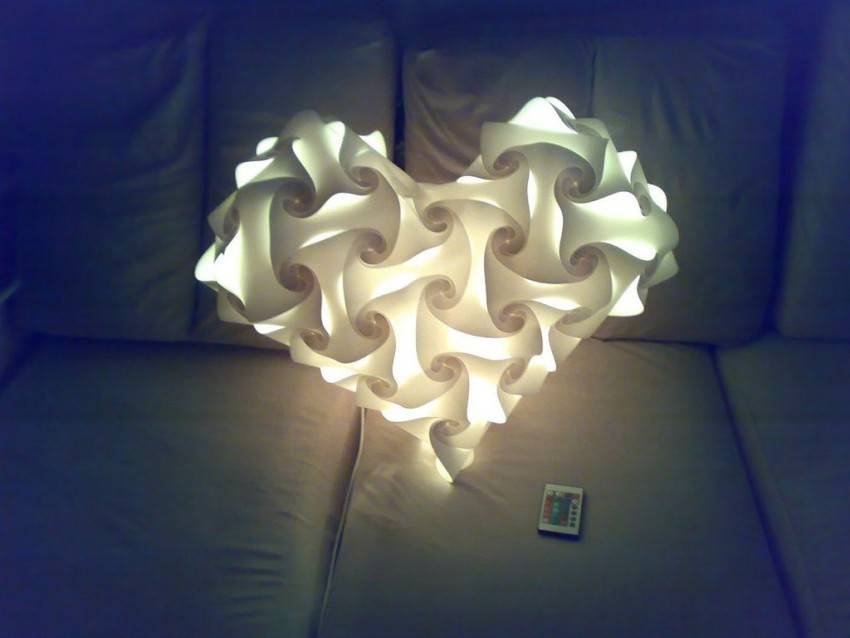 После этого приклеить все составляющие к основанию светильника. Позаботьтесь, чтобы швы были скрыты. Подготовленный абажур следует как можно лучше высушить, а после надеть на лампу.