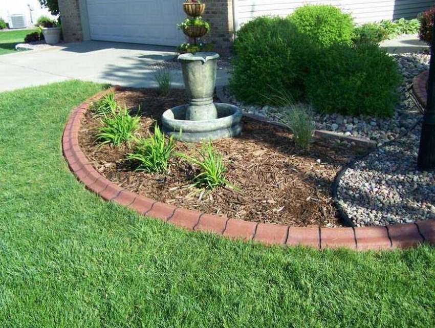 Смесь на основе цементного раствора с щебнем – наиболее удобный материал для изготовления небольшого заборчика вокруг палисадника. Жидкому бетону придают любую форму, ограждение может повторить заданный контур. Также застывший раствор не гниёт, хорошо переносит жару и морозы. Бетонные бордюры будут долго сохранять чёткие формы.