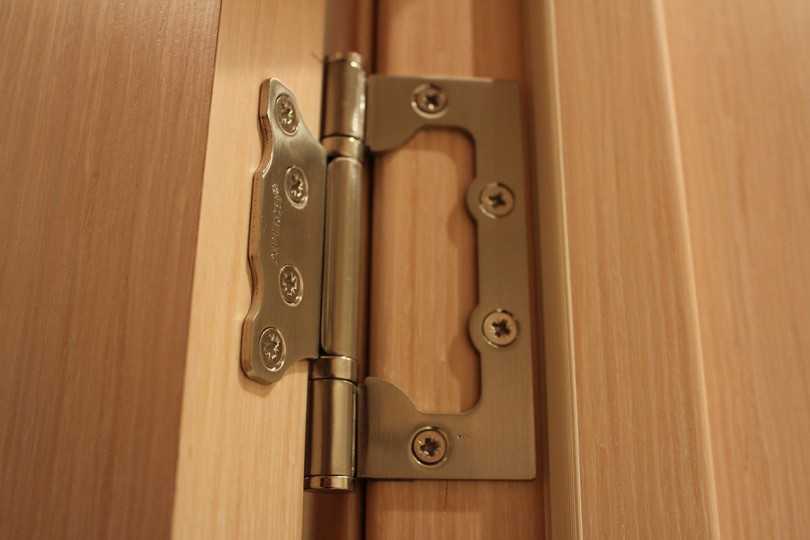 - Подбираются подходящие петли. Для межкомнатных дверей будет достаточно пары петель. Если коробка устанавливается для входной двери, то чтобы сделать конструкцию прочнее приобретают третью петлю, которая крепится чуть выше середины дверного полотна, чтобы правильно распределить нагрузку.