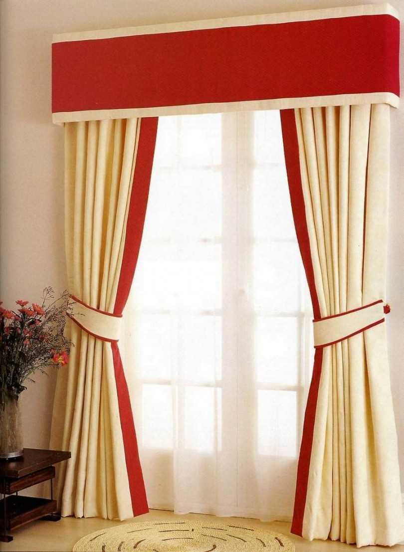 Очень интересно смотрится ламбрекен, выполненный с использованием сразу нескольких видов материала отличающегося друг от друга по цвету и фактуре и дополненный различными декоративными вставками и бахромой. Таким образом, на нем можно создавать различные узоры или рисунки. Использование такого ламбрекена сделает оформление оконного проема еще более интересным, а сама занавеска даже в том случае, если она изготовлена из однотонного не яркого материала будет выглядеть очень красиво.