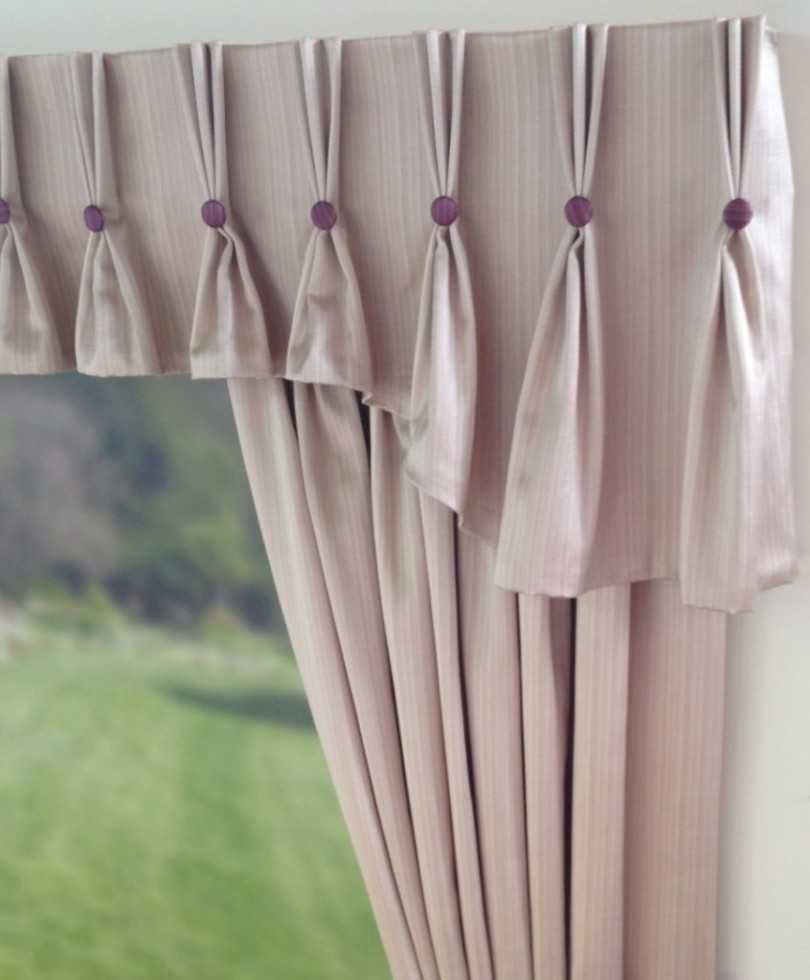 Далее формируем, закрепляем нитками и утюжим складки, предварительно подшив края ламбрекена.