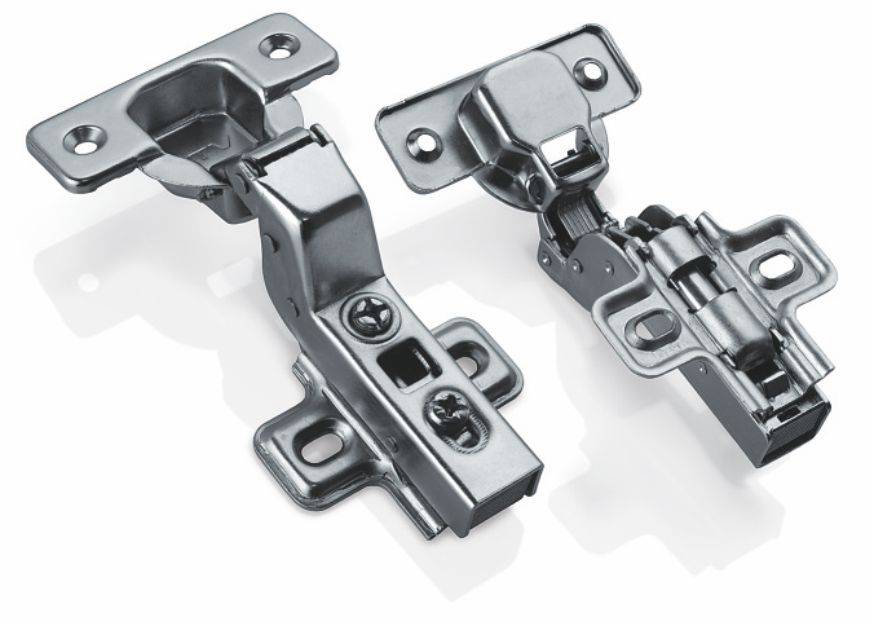 Особенности строения мебельной фурнитуры — основной признак, по которому ее принято делить на категории. Самые популярные варианты петель, не требующих врезки, стоит рассмотреть более подробно.