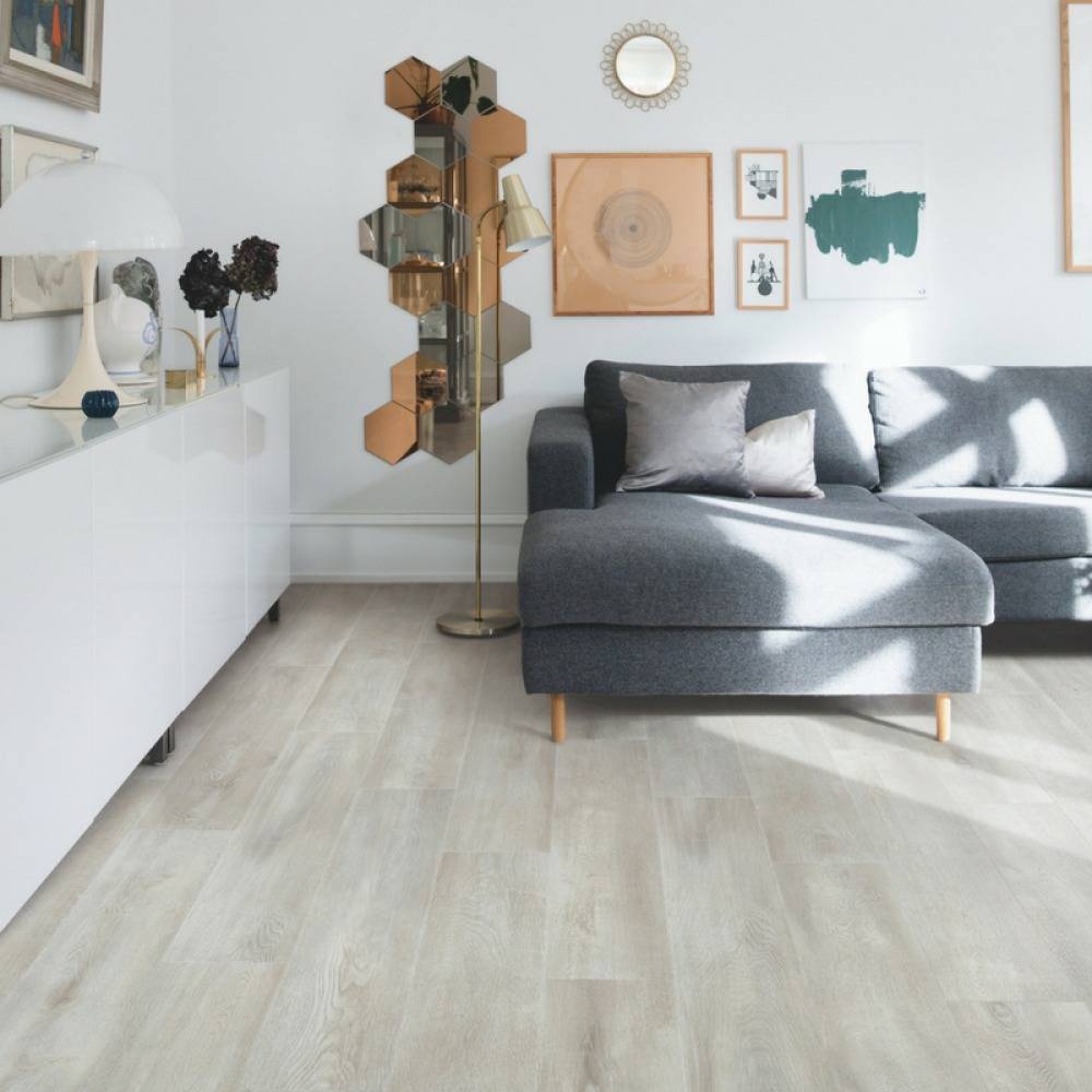 Светлые оттенки зрительно расширяют пространство, темные создают акценты. Рисунок с имитацией половиц или линий может оптически сузить или вытянуть комнату. На однотонных темных полах виднее пыль и пятна.