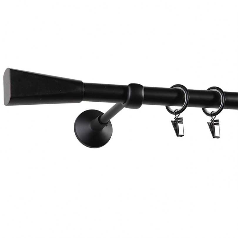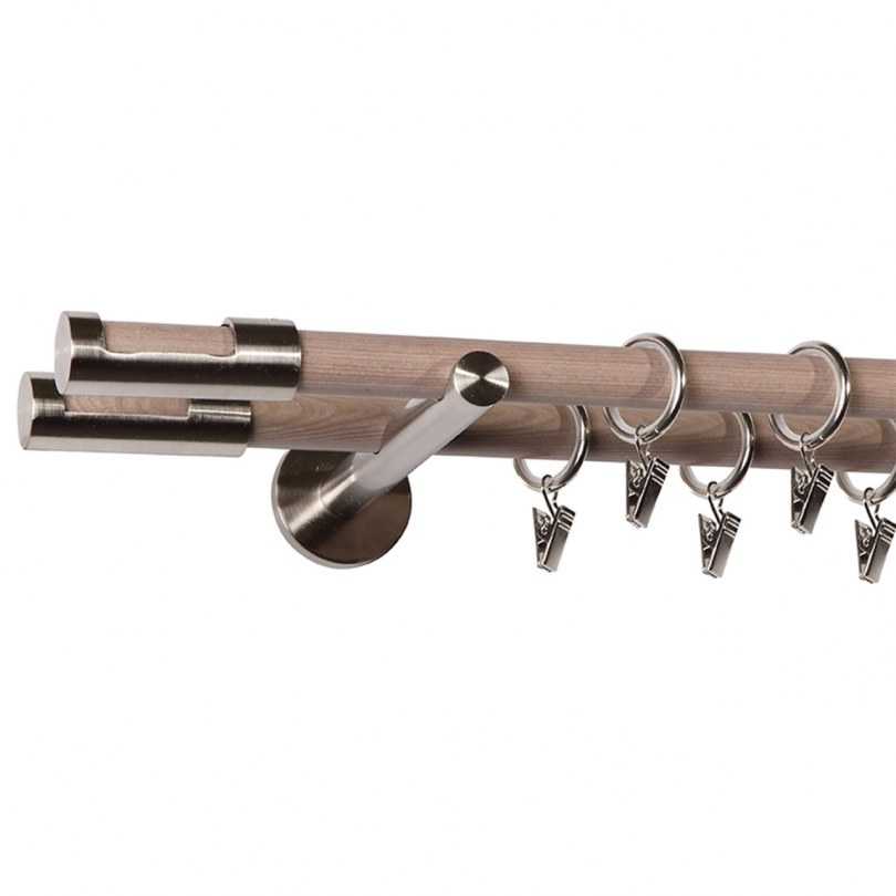 - Популярный вариант — 1-2 штанги с боковыми кронштейнами. Для очень широких оконных проемов применяют промежуточные кронштейны (добавочные).
