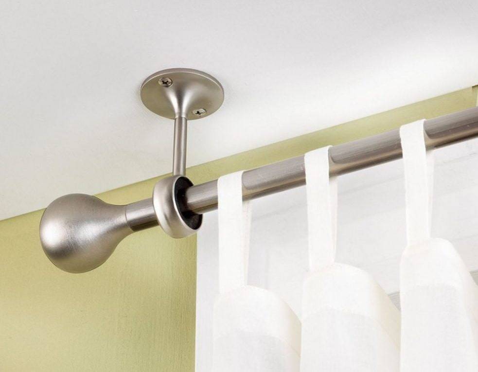 Есть еще такая экзотическая разновидность, как распорный карниз. Он представляет собой круглую штангу и устанавливается между стен. Держится он за счет установленных внутри пружин, которые “выталкивают” концы наружу. На такое крепление нельзя вешать тяжелый текстиль. К тому же перекладина оказывает постоянное давление на стену и способна повредить ее покрытие.