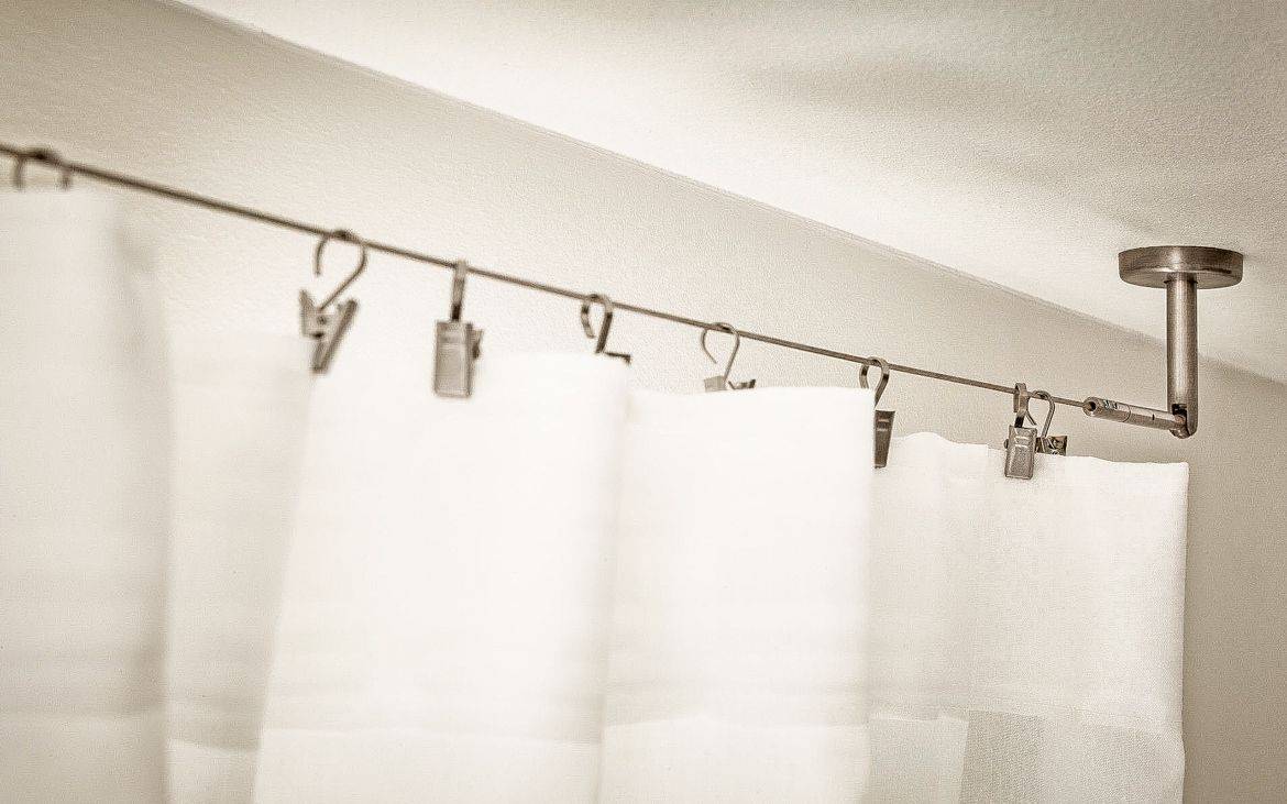 Карнизы этого типа могут иметь несколько рядов. Особенностью и достоинством струнных карнизов является множество доступных способов крепления. Их можно зафиксировать между стенами, у оконного проема и даже на потолке. В качестве креплений для текстиля используются прищепки или особые крючки.