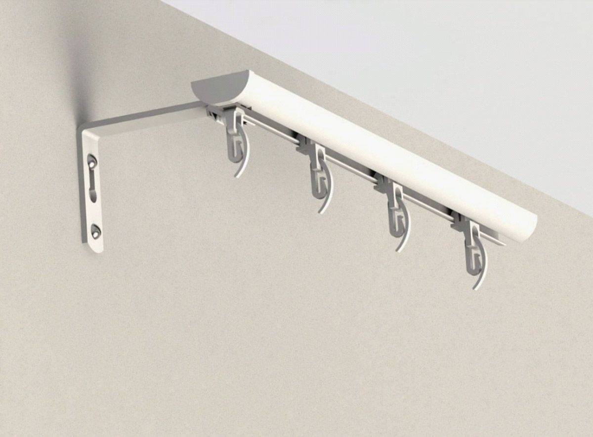 Подобный тип часто монтируют к потолку и делают скрытым. Если крепеж остается видимым, то наружную часть украшают блендой – неширокой декоративной планкой. Правильно установленный профиль из алюминия способен выдерживать любые нагрузки. А пластиковые образцы лучше использовать с невесомыми материями.