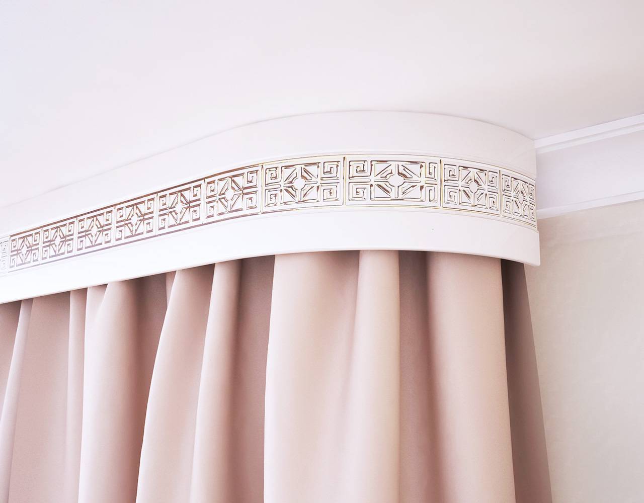 Кроме того, для ламбрекенов и эркеров производители выпускают карнизы с закругленными краями, что позволяет беспрепятственно декорировать оконные проёмы.