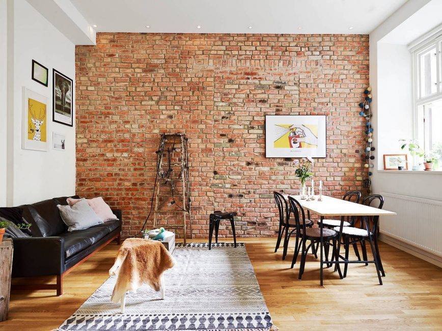 Кирпичная стена в гостиной — к какому стилю интерьера она подойдет?