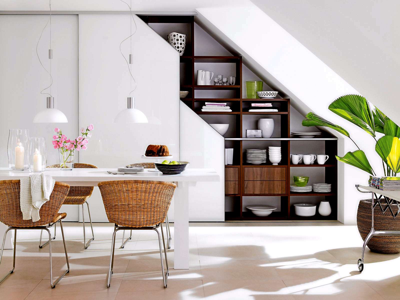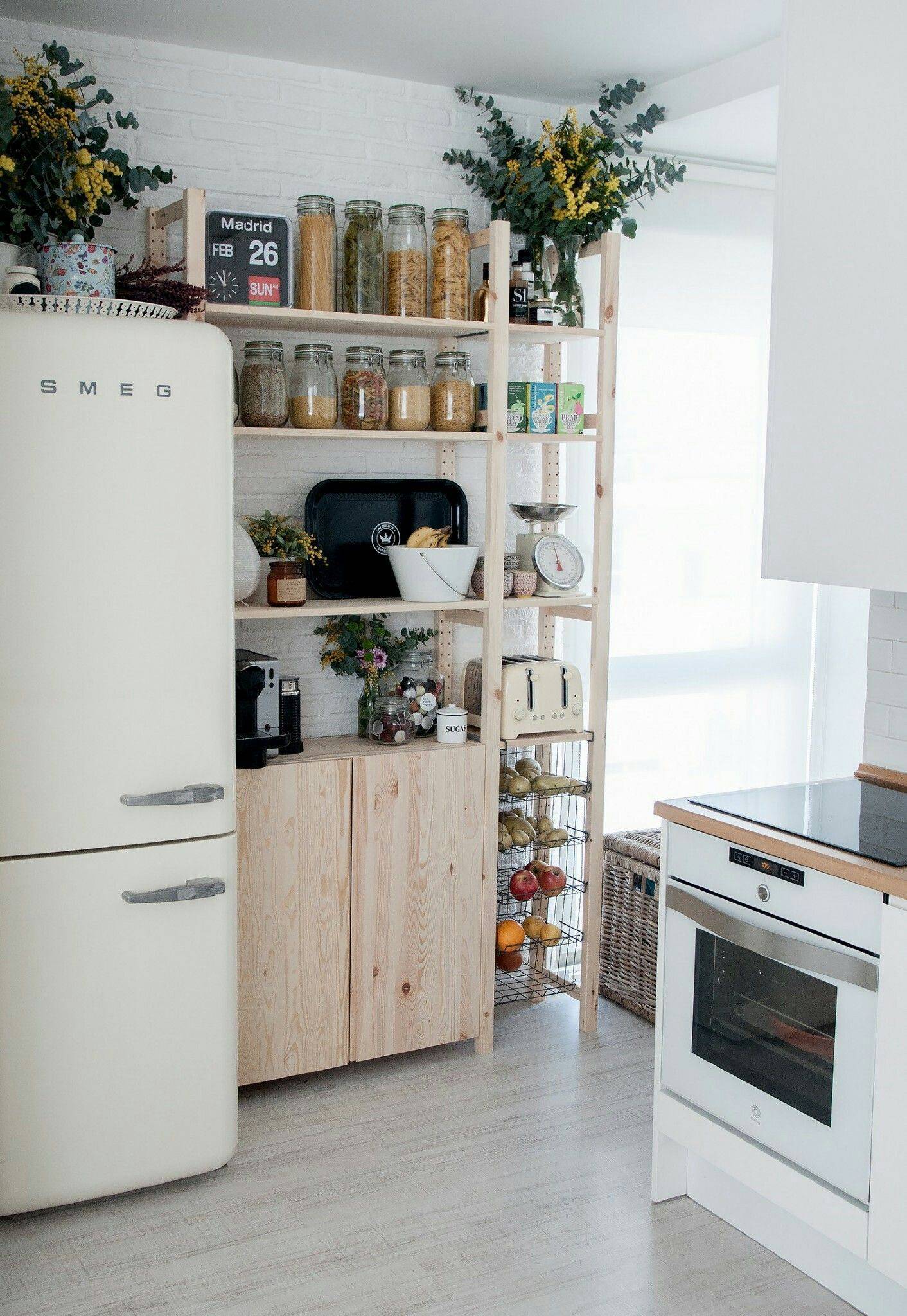 - Небольшие, но легкодоступные полки, оборудованные для хранения того, что необходимо каждый день и не зависит от времени года.