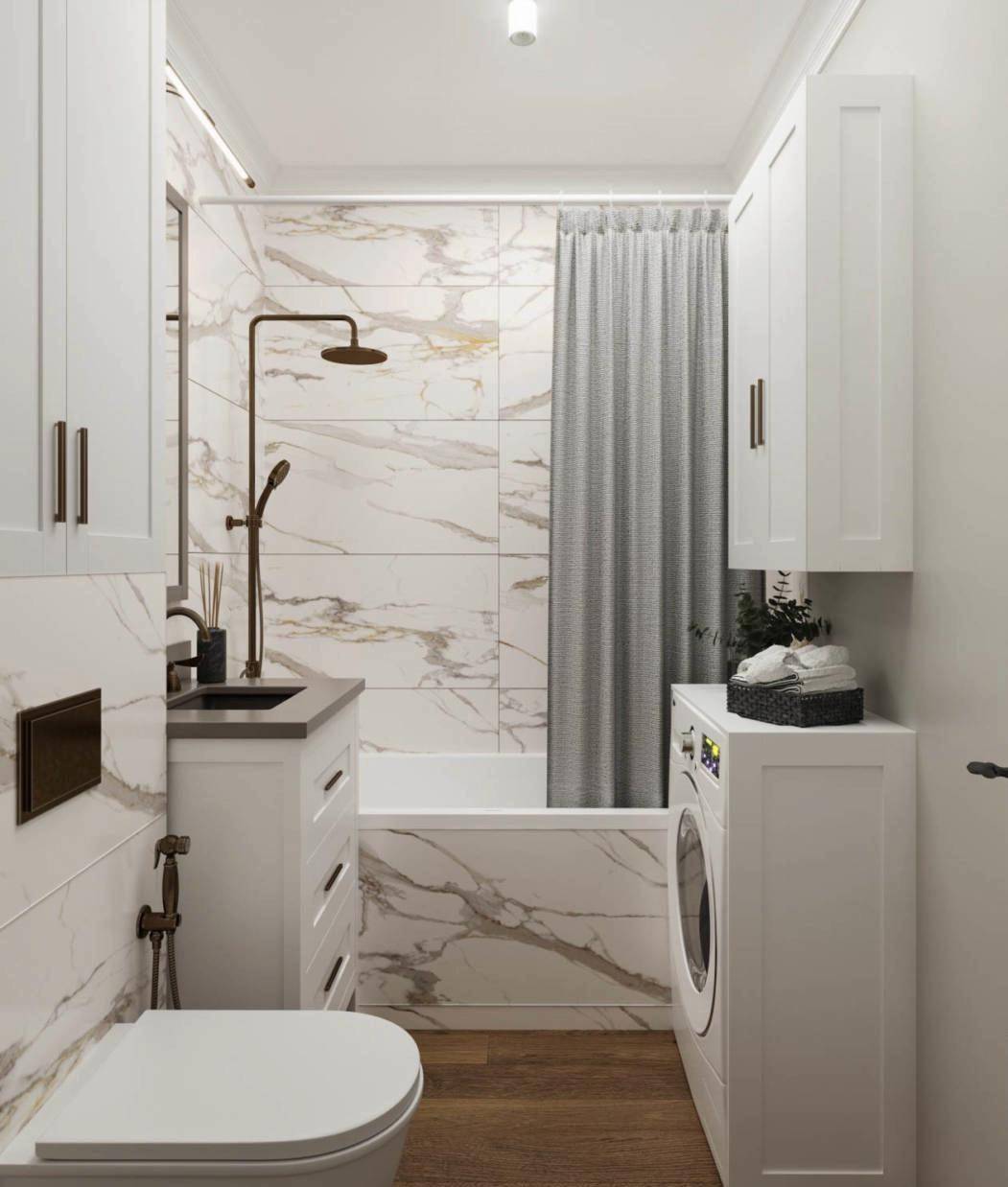 Совмещенный санузел, можно соединить с частью коридора – в итоге вы получите большое пространство, где поместится стиральная машина или бойлер Оставшееся место в коридоре можно использовать для шкафа-купе. В таком случае вы освободите место в комнате и вам будет где хранить сезонные вещи.