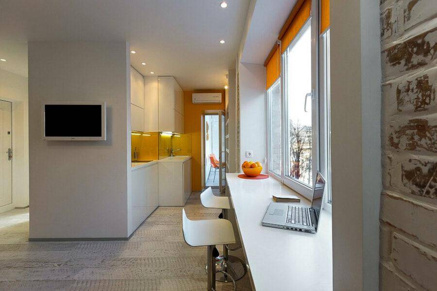 В последнее время многие жильцы практикуют еще один способ увеличения жилой площади – это совмещение лоджий и балконов. Но для этого нужно тщательно произвести утепление стен балконов и лоджий, а также, провести туда отопление. В результате можно получить еще одну комнату с оптимальной температурой, где можно разместить, например, рабочий кабинет.