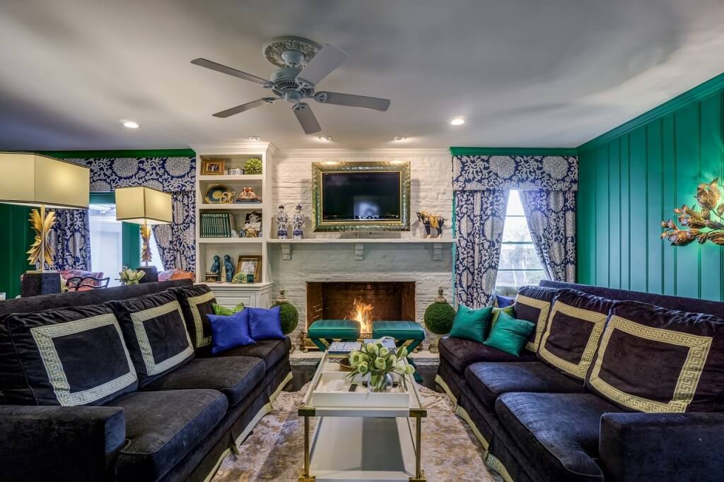 Интерьер дома в классическом стиле подразумевает построение координационного центра. Простым языком в дизайне должен присутствовать небольшой камин, объёмный диван и вместительный комод с большим количеством резьбы. Все эти предметы должны располагаться по центру комнаты.