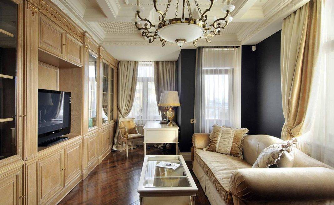При обустройстве современной классики в интерьере квартир, особое внимание уделяется зонированию помещений. Основной акцент делается на гостиную, где часто собираются гости и все члены семьи по вечерам и праздникам