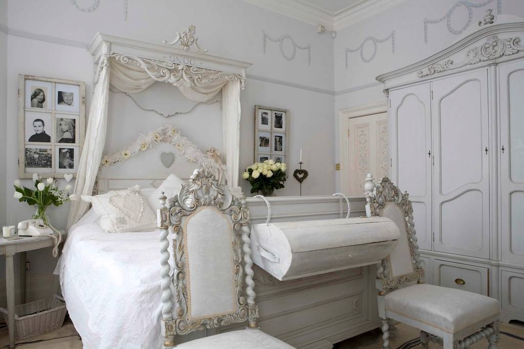 Текстильное оформление представлено дорогими натуральными тканями, имеющими богатый и благородный внешний вид. Декорирование помещений осуществляется с помощью изделий ручной работы, старинных и изысканных аксессуаров.