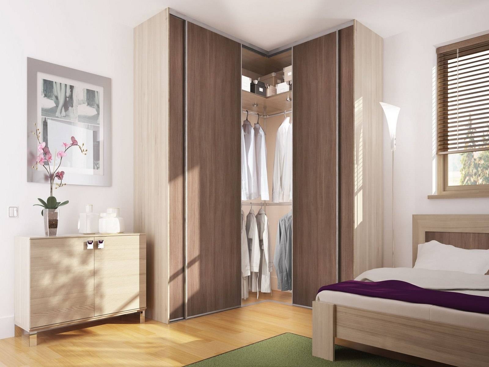 Вариации фасадов для углового шкафа-купе в спальню: фото примеры