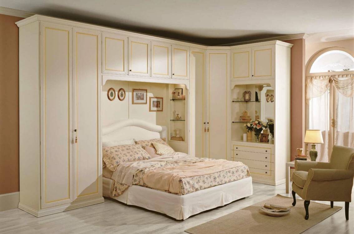 Помимо компактного размещения встроенный вариант имеет и ряд других достоинств. Подобную мебель для спальни несложно смастерить самостоятельно, снабдив удобным раздвижным механизмом и наполнением по своему усмотрению.
