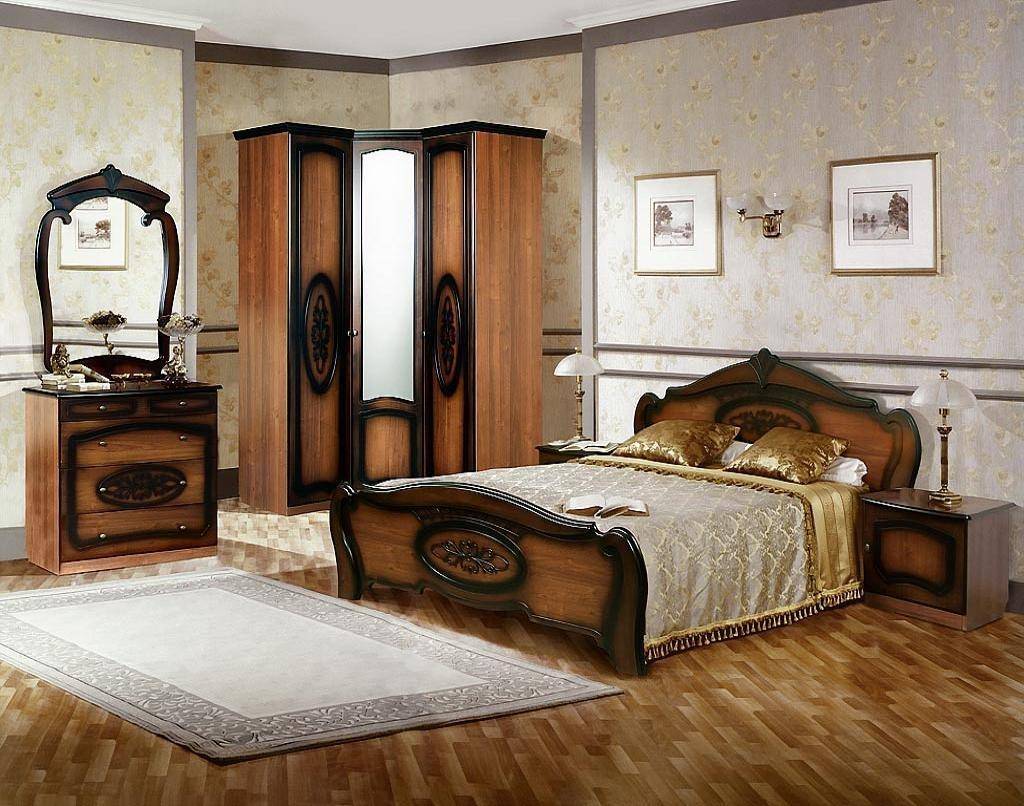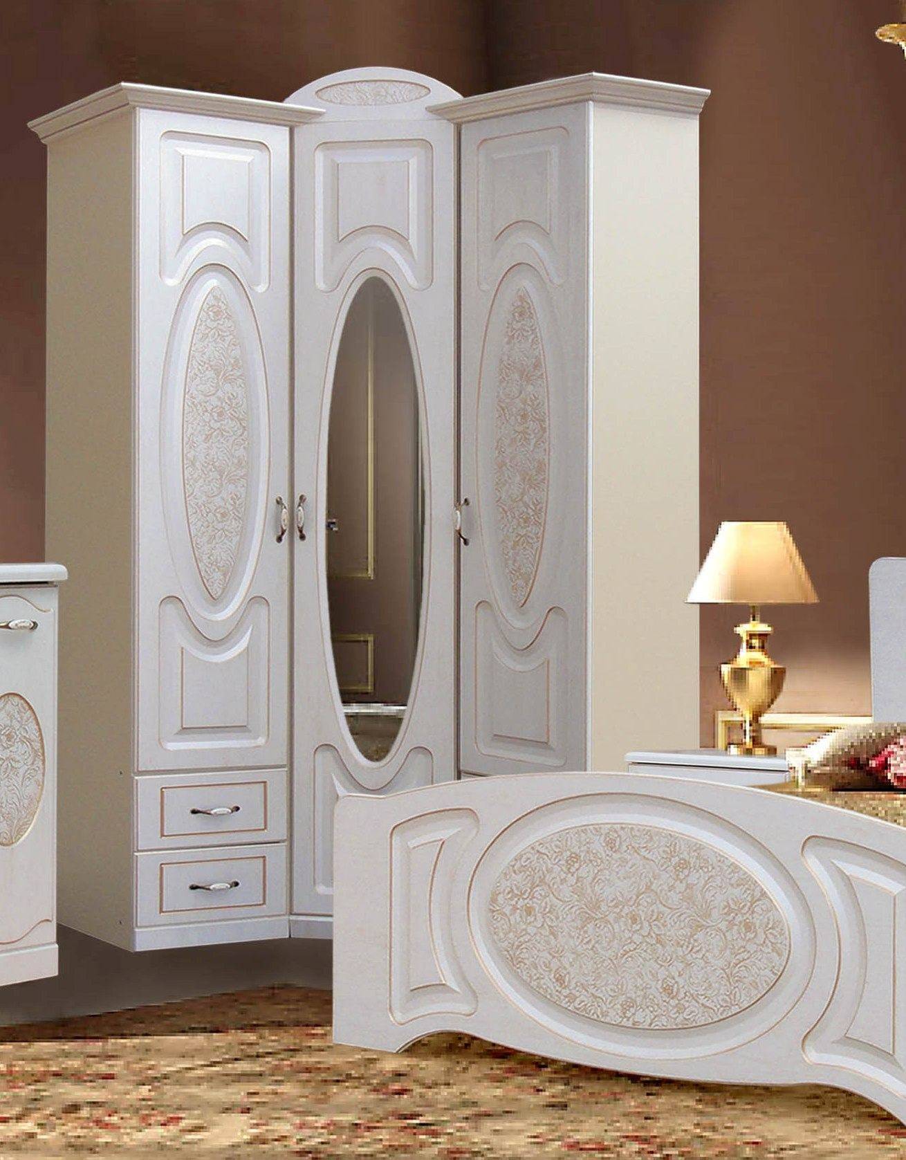 В таком направлении приветствуется симметричность линий, изящные дополнения, возможно лепнина. Спальный гарнитур строго белого или кремового цвета с глянцевой фактурой. Такие детали отражают окружающую обстановку, помещение приобретает свежесть и легкость.