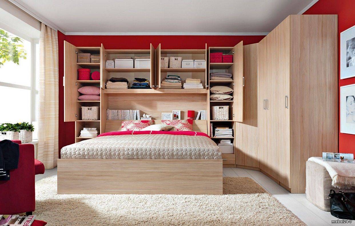 Узкая спальня с гарнитуром под габаритным окномИсточник design-homes.ru