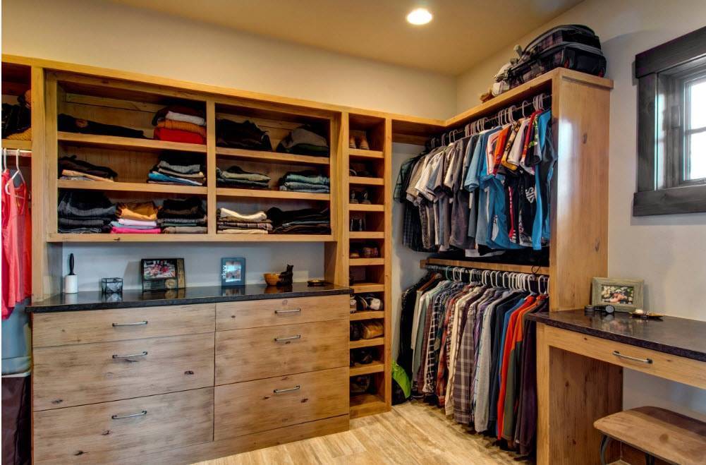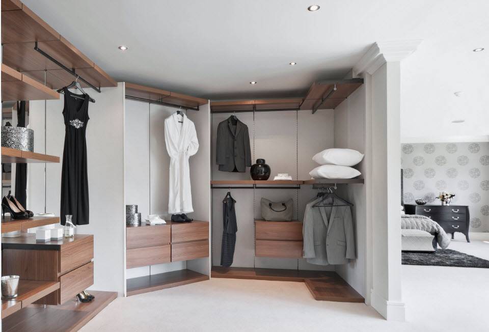 Кстати, именно в гардеробной комнате шкаф не обязательно должен иметь фасады. Очень красиво смотрятся открытые варианты. По мнению дизайнеров, именно такой шкаф стоит выбирать для гардеробной.
