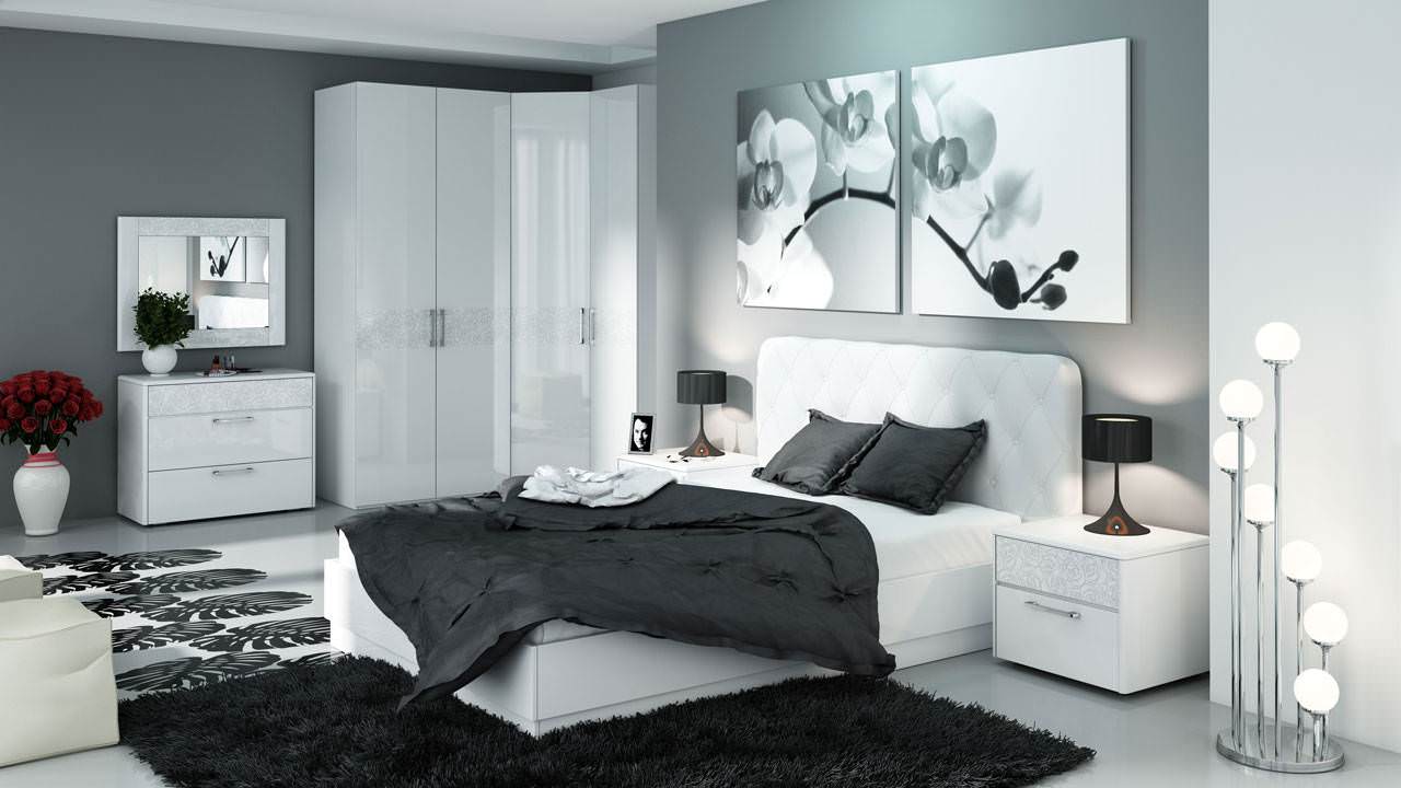 Если в комнате в черных тонах присутствуют “французские” оттенки — пастельный, розовый, персиковый, мраморный, молочный, тогда мебель должна быть с затемненной матовой текстурой.