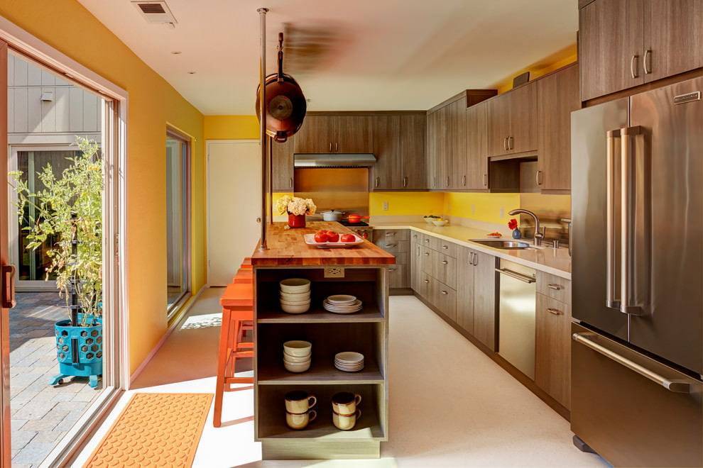 Желтые и оранжевые оттенки сочетаются со светло-коричневым цветом. Они принесут тепло, невероятный уют в жилище.
