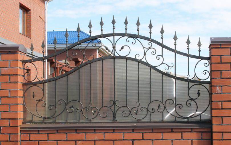 Изящные кованые элементы на высоком фундаменте забора — красиво и конфиденциально
