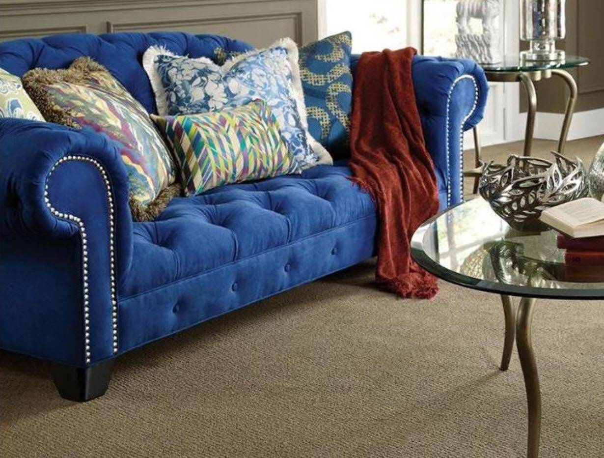 Синий цвет ковролина – это яркий цветовой акцент в дизайне интерьера любого помещения, дополняющий общую атмосферу умиротворением и спокойствием. Это прекрасная возможность придать свежести и колорита комнате, особенно в гармоничном цветовом сочетании с предметами мятных, изумрудных и белых тонов.