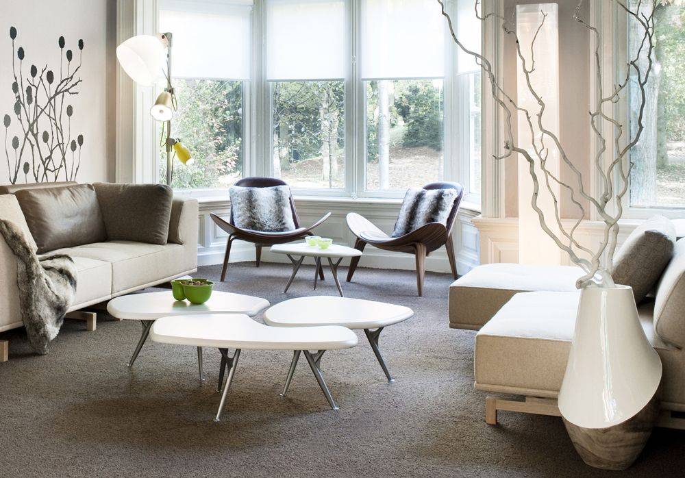 Если вы остановились на натуральной цветовой гамме в нейтральных светлых оттенках, интерьер может «заскучать». Предотвратить это можно, добавив фактурности, с чем отлично справятся напольные ковровые покрытия в натуральных расцветках.
