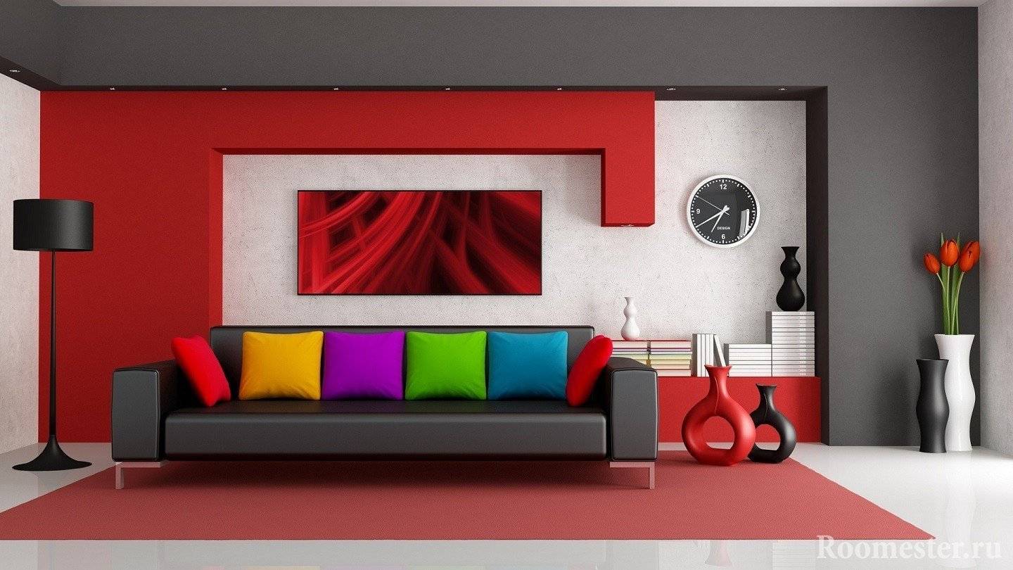 При желании сделать яркий акцент, фокусируют внимание на стене, предмете мебели или интересном аксессуаре