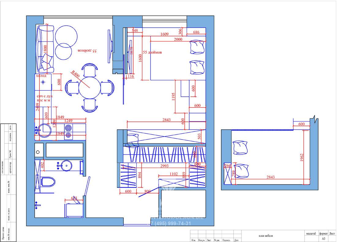 На фото: Планировка квартиры 35 кв. м. Как сделать из однокомнатной двухкомнатную