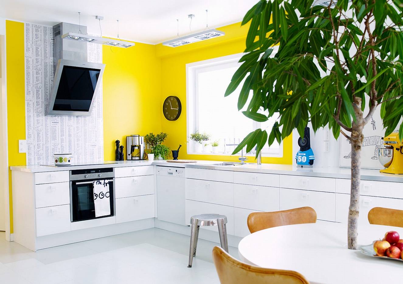 Алкидная краска для стен на кухне будет смотреться эстетично и привлекательно. После высыхания создастся красивая глянцевая поверхность, которая не потеряет блеска при длительной эксплуатации.