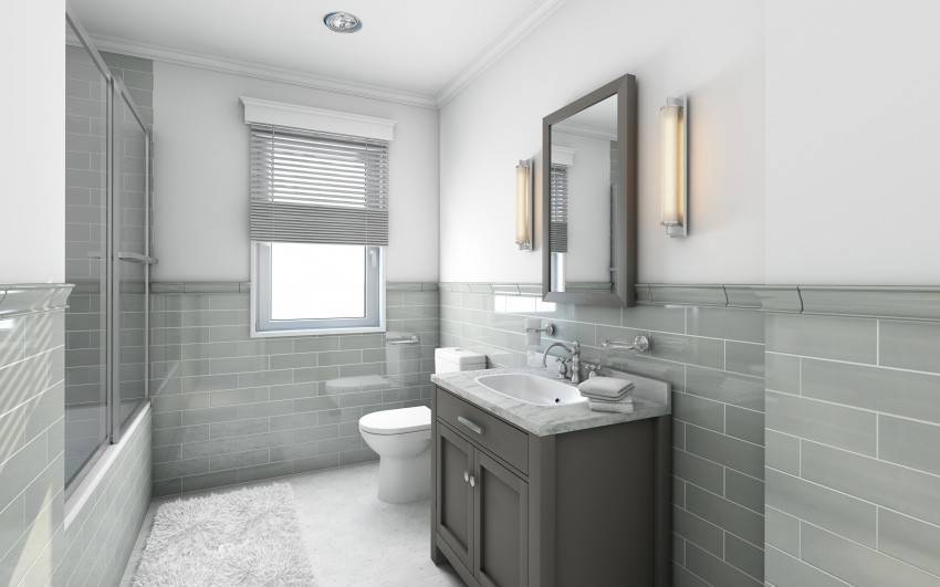 Санузел в классическом стиле допускает использование одновременно до трёх оттенков серого. Характерные черты классики – лепнина, патина, резьба, натуральные отделочные материалы, деревянная мебель, ощущение роскоши и богатства без помпезности.