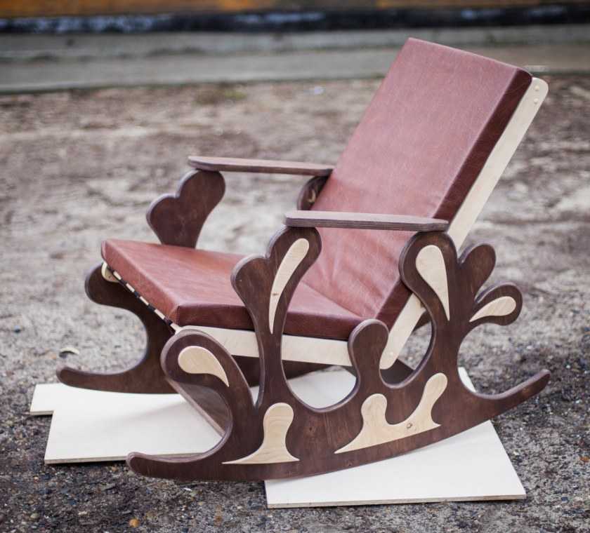 Существует и вариант изготовления качалки из фанерной доски. Такой вариант является наиболее простым и бюджетным, доступным для реализации любому человеку, обладающему базовыми столярными навыками. Плюсом такой конструкции можно назвать ее малый вес и возможность воплотить в жизнь любые задумки благодаря линейным размерам пластин и их различающейся толщине. Для продления срока эксплуатации фанерного кресла-качалки требуется дополнительная обработка с использованием полимерной эмульсии ли же лака на основе акрила.